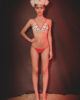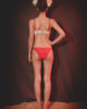 Ce maillot deux pièces , inspirée de la collection Eté 2015 « Viva la revolucion » de Leinboho , est composé de deux tissus : un à motifs Perroquet et un tissu uni rouge qui vient souligner les formes du maillot. Ce maillot peut se porter sous un tee shirt transparent tel une brassière. Le haut du maillot est un triangle et comporte des bretelles réglables. La bande élastiquable sous le triangle permet un meilleur soutien de la poitrine. La culotte est quant à elle fine et à tissu uni rouge.