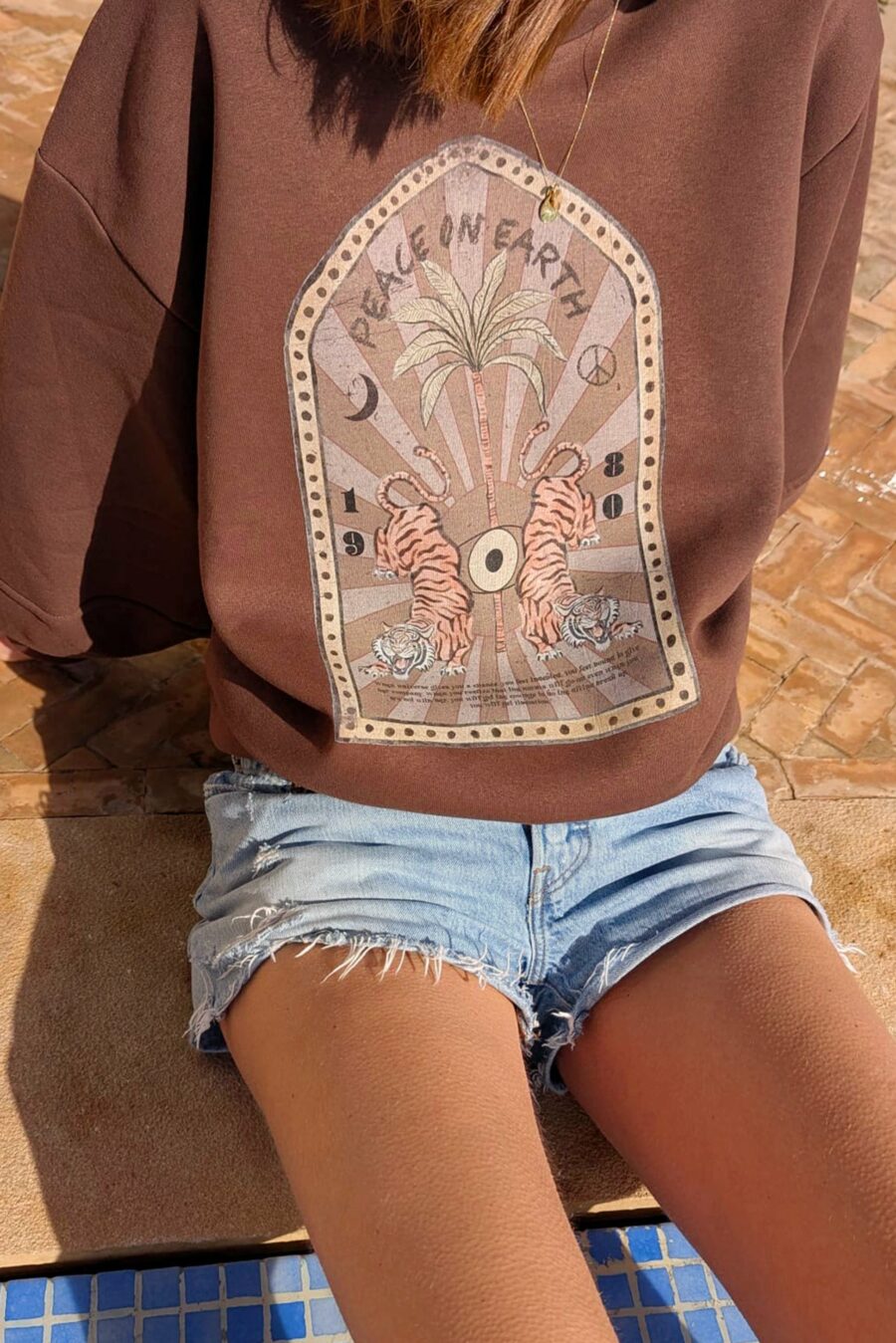 SWEAT AMPLE CHOCOLAT PERSONNALISABLE PEACE ON EARTH