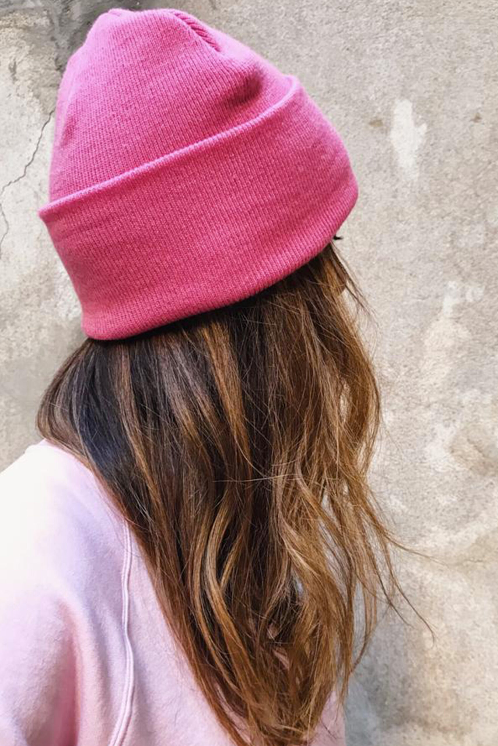 – Bonnet rose large avec revers