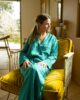 – Chemise manches longues en viscose satiné faux uni motif léopard vert sapin