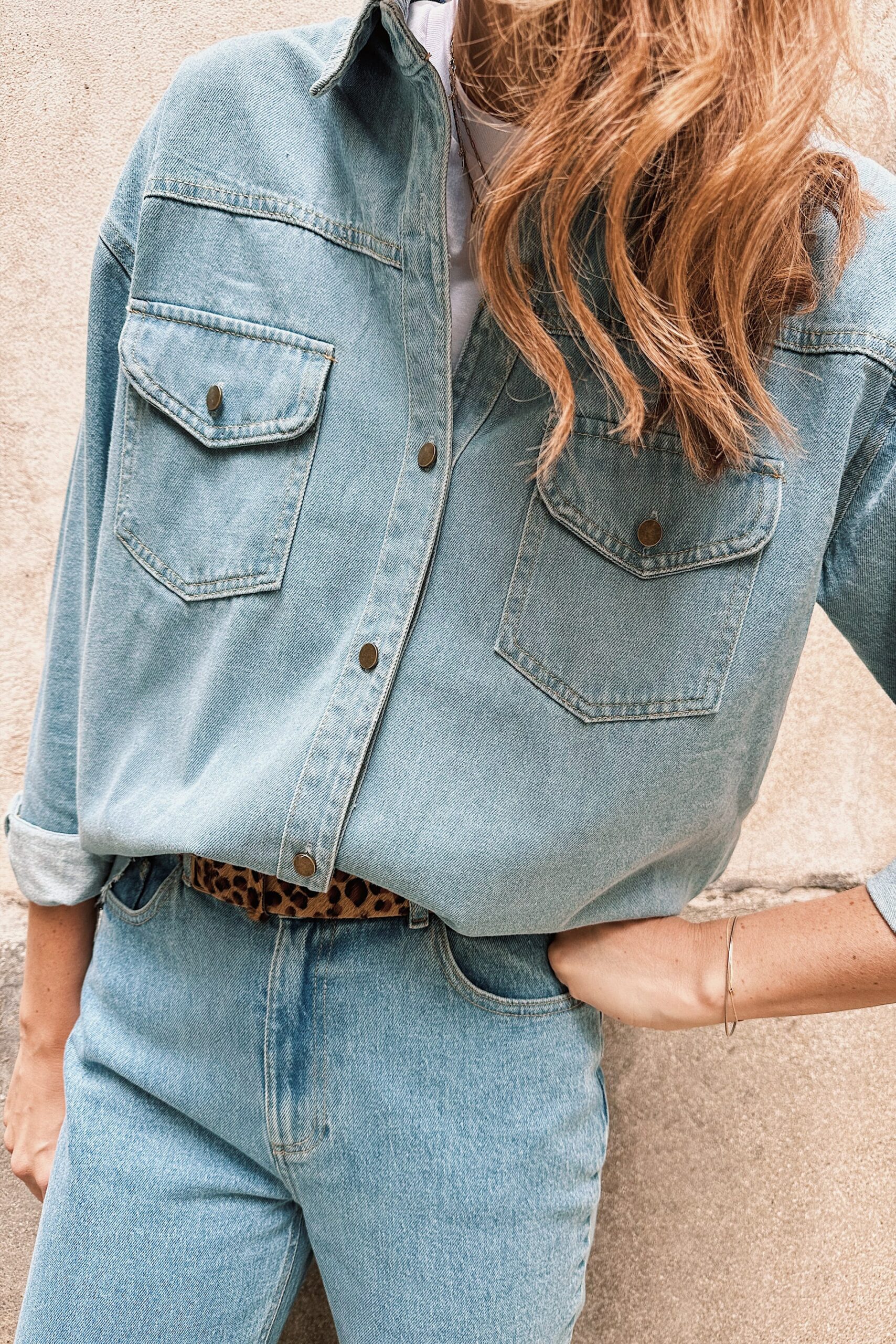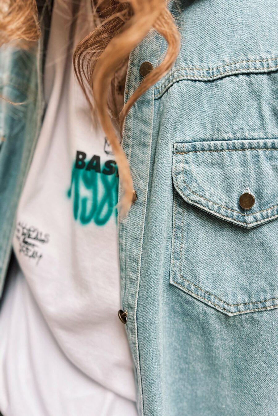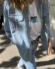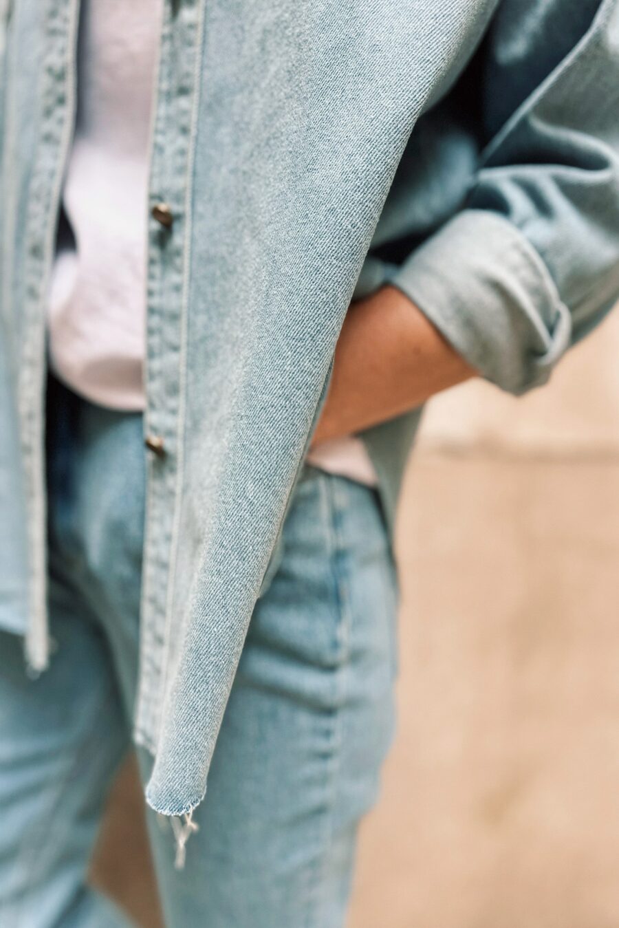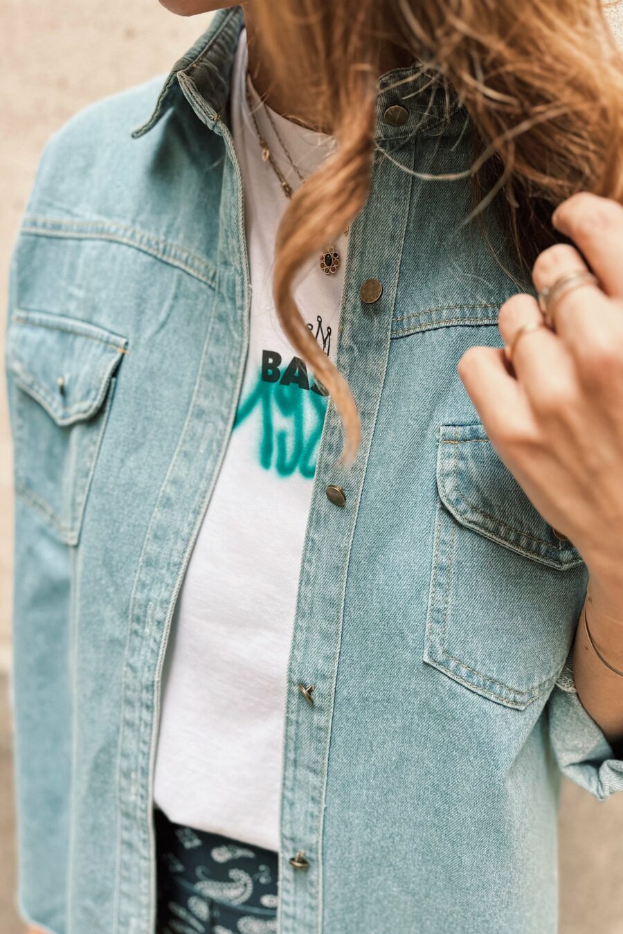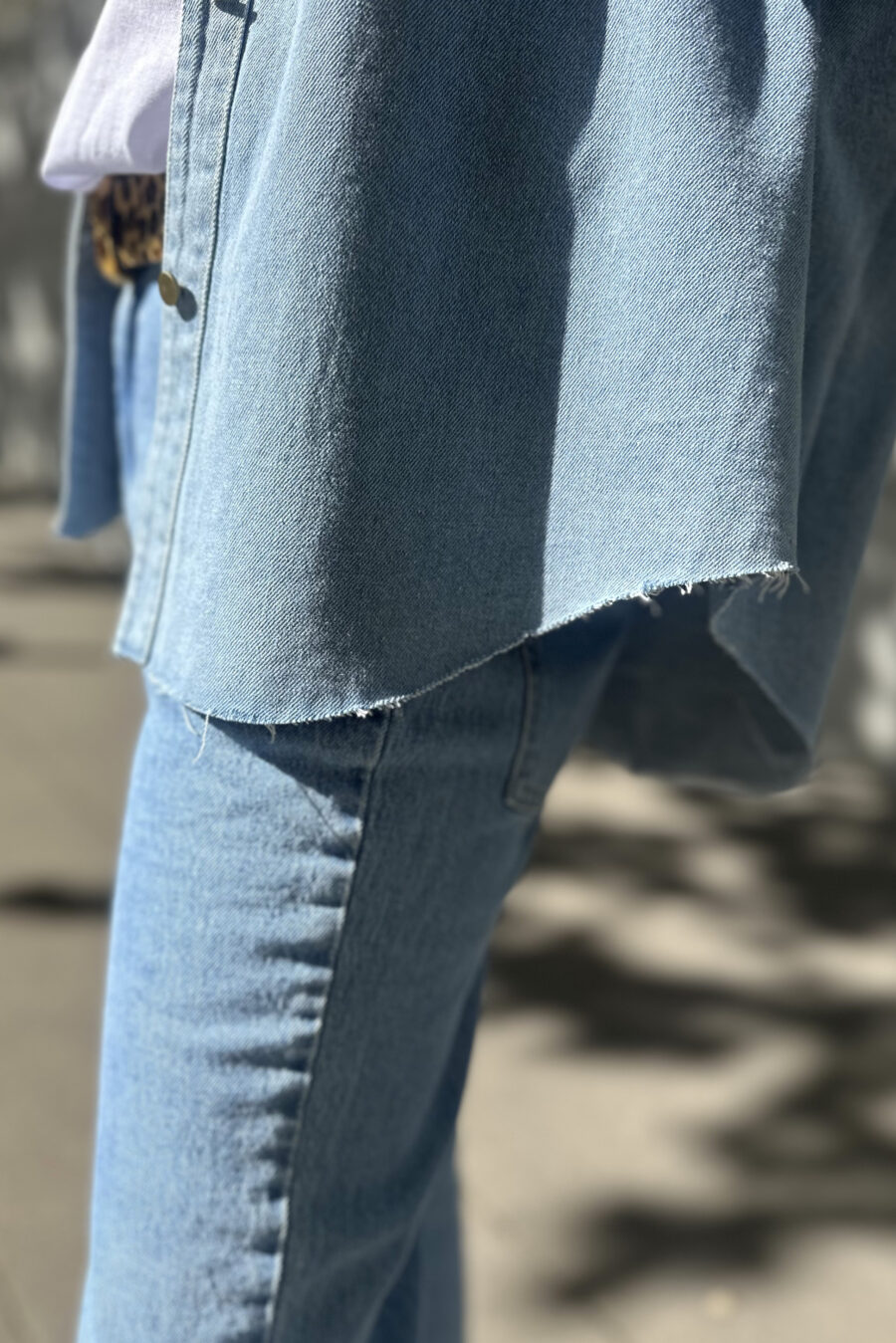 – Longueur depuis l’épaule 66 cm pour une taille 40 bord bas effiloché