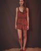 Cette combinaison , Leinboho, dans l’esprit bohème, reprend la « dégaine » de frida Khalo qui portait des vêtements amples et conforts mais aussi élégants grâce à sa coupe .Elle se porte ample donc s’enfile sans moyen de fermeture, cette combi possède des poches sur les côtés et à un décolleté plongeant dans le dos pour un côté féminin.