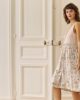 – Robe avec uni Pastel rose pour  le haut, lien de taille en motif nervure vert pastel et bas de robe en motif « shell ».