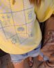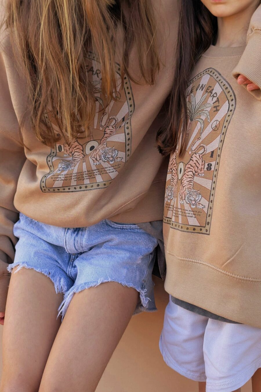 – Chaque pièce est unique et le design est imprimé avec une technique particulière qui se patinera avec le temps. C’est pour cela qu’un lavage sur l’envers et délicat est préconisé.