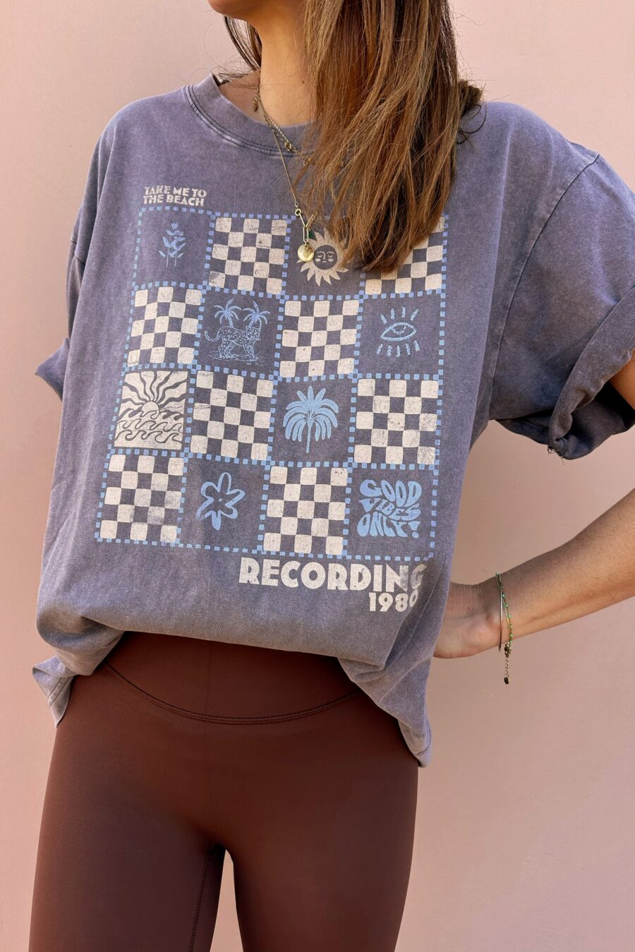 – Impression “Recording” effet vintage vieilli et personnalisable avec la date de votre choix