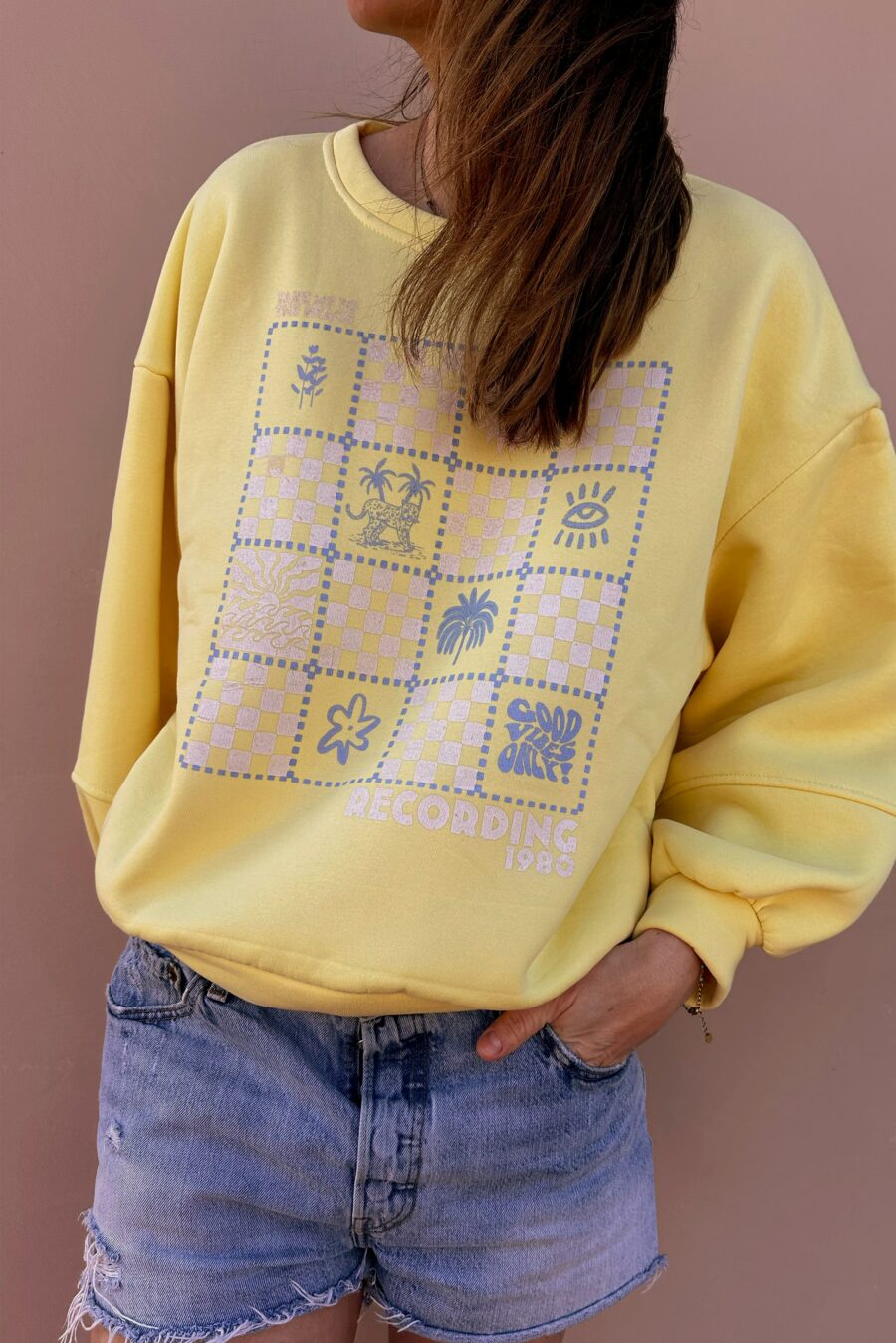 – Chaque pièce est unique et le design est imprimé avec une technique particulière qui se patinera avec le temps. C’est pour cela qu’un lavage sur l’envers et délicat est préconisé.